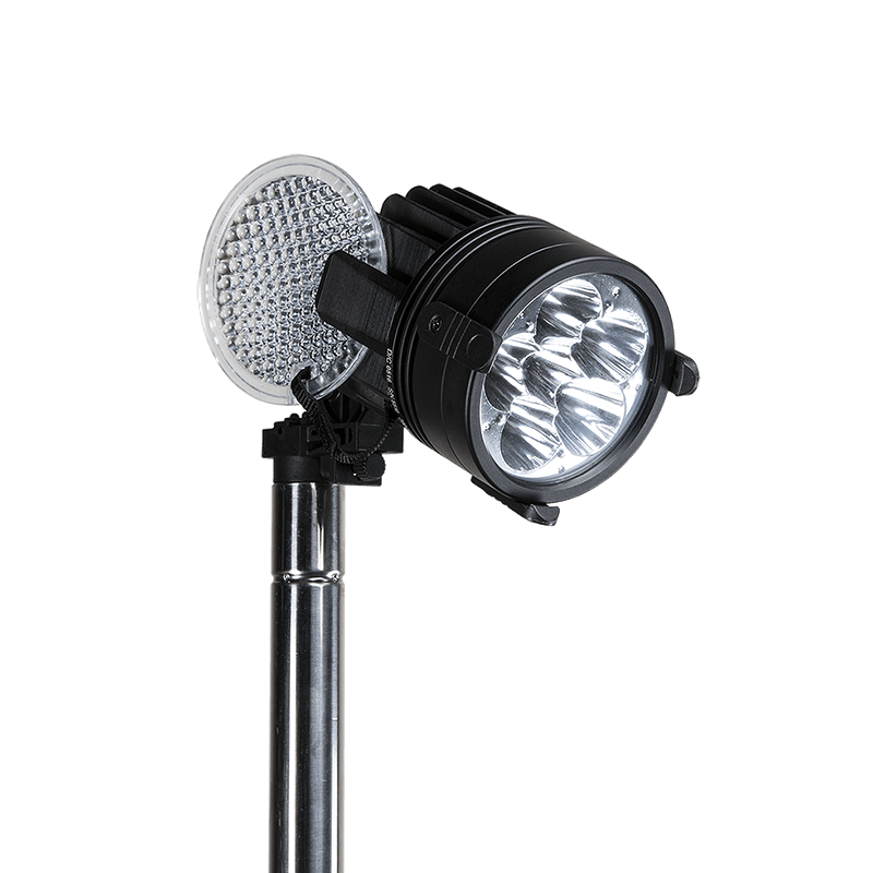 Powered by an internal rechargeable Li‑ion battery, the Nomad Prime provides between 3 and 24 hours of runtime, depending on the mode. With four light modes—low, medium, high and flashing—you can adapt output to your operational needs. When plugged into the included AC/DC adaptor, the light can run continuously for extended operations. A battery level indicator ensures you always know how much runtime remains.
