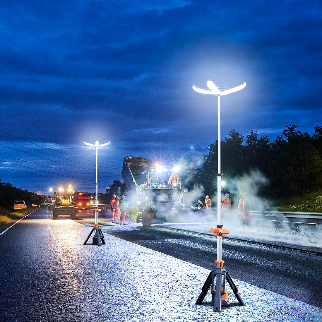Built for speed and convenience, the PL‑200 deploys in seconds thanks to its quick‑release tripod legs and intuitive, compact folding design. Once set up, the heavy‑duty aluminium mast extends up to 2.5 metres, securing firmly in place using robust adjustable clips. This gives you elevated, wide‑angle lighting that eliminates shadows and blind spots across your workspace. Whether positioned indoors or outdoors, the tower remains stable even in windy or high‑vibration environments.