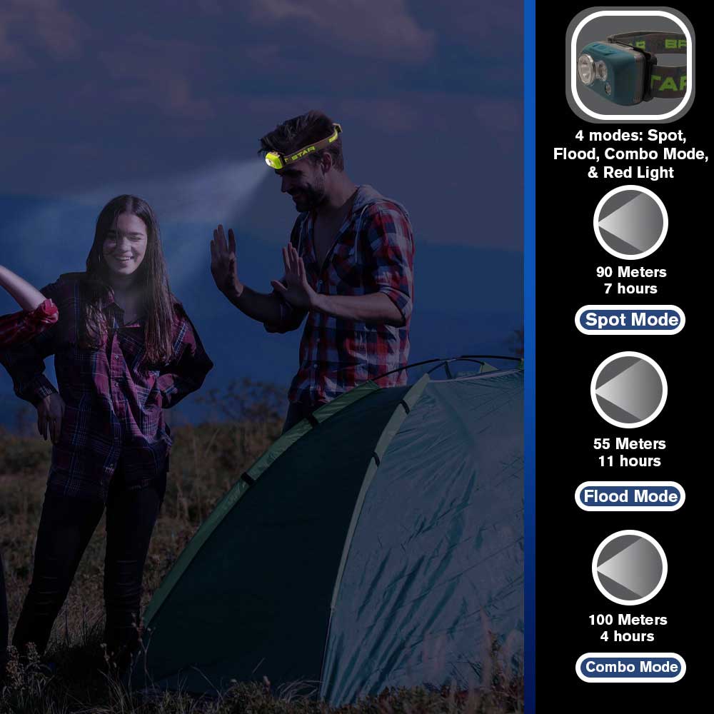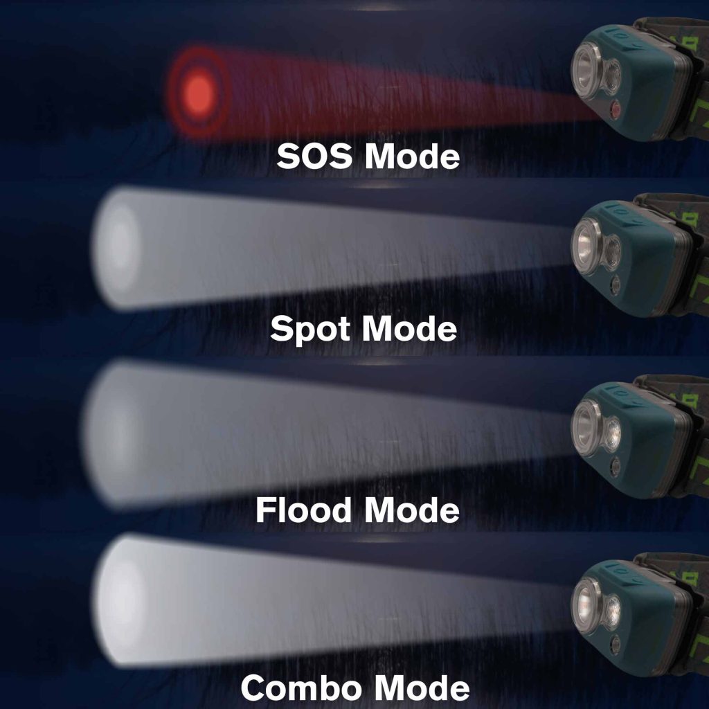 This advanced headlamp includes four lighting modes—Spot, Flood, Combo, and Red Light—so you can adapt instantly to any situation.