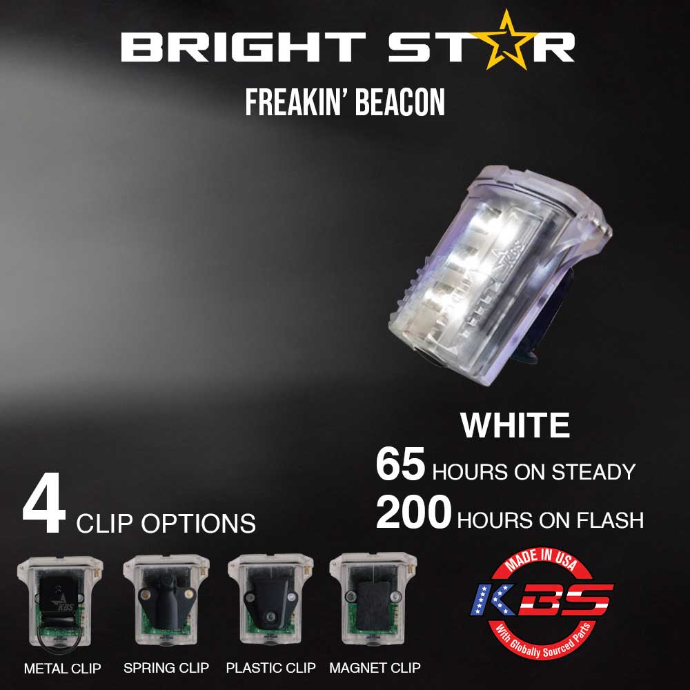 Lightweight at just 3.4 oz and measuring only 2.7″ × 2.6″ × 1.5″, the Brightstar Freakin’ Beacon is compact, tough, and incredibly dependable—making it one of the most versatile and long‑lasting personal safety lights on the market. For any job or adventure where visibility is essential, the Freakin’ Beacon is the safety device you can trust.