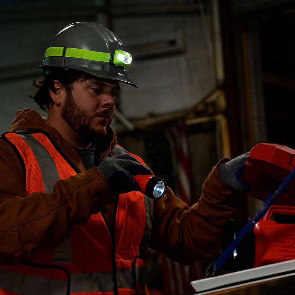This multi‑mode headlamp features four lighting modes—High Spot, Low Spot, High Flood, and Low Flood—giving users the flexibility to choose between long‑range visibility or wide‑angle illumination depending on their task. High Spot delivers 185 lumens for 6.75 hours, while Low Spot provides 65 lumens for an impressive 20 hours of continuous runtime. Flood modes extend runtime even further, offering economical lighting for low‑light environments or extended shifts. All modes are controlled via a large, glove‑friendly pushbutton that simplifies operation in harsh conditions.